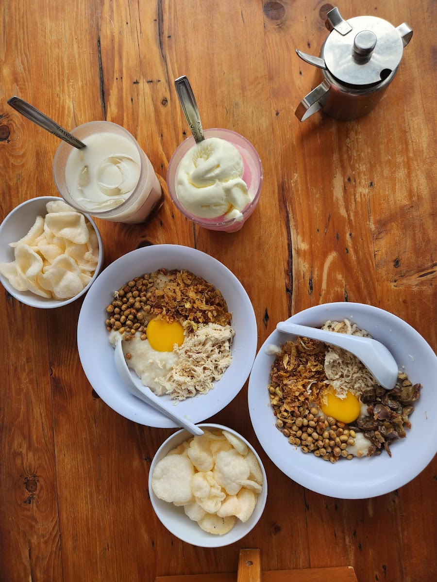 For those who enjoy some variety, you’ll find Es Bruno, a refreshing drink that perfectly complements the warm porridge. Although the indoor area might get a bit warm, guests like Fahri have made the most of it by savoring the delightful dishes outside, enjoying the evening breeze as they relish in each bite.